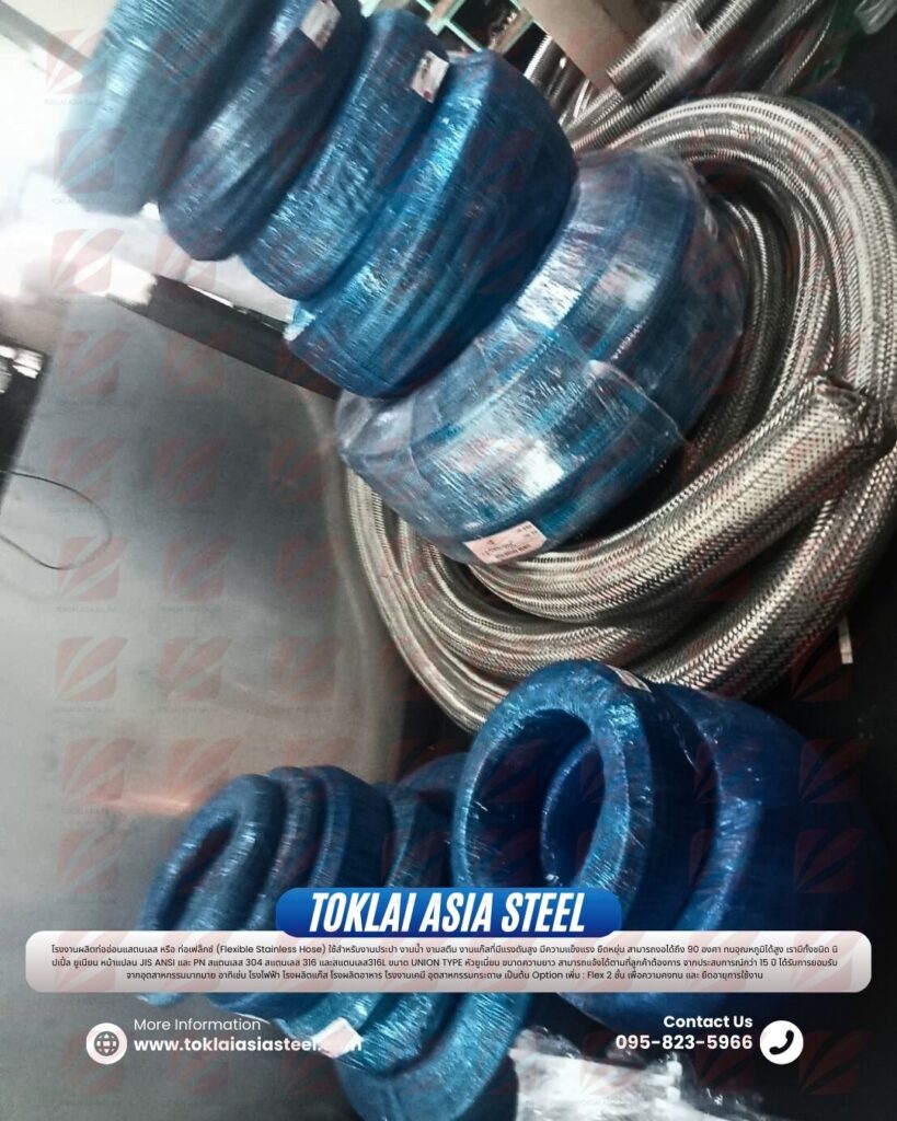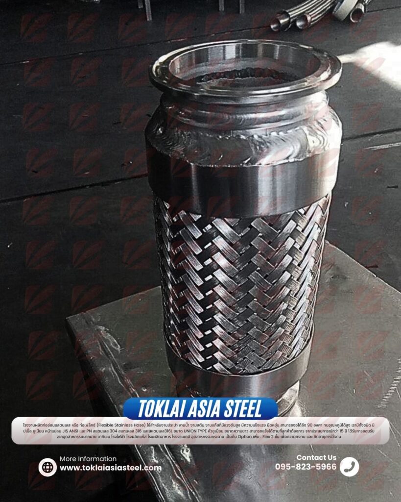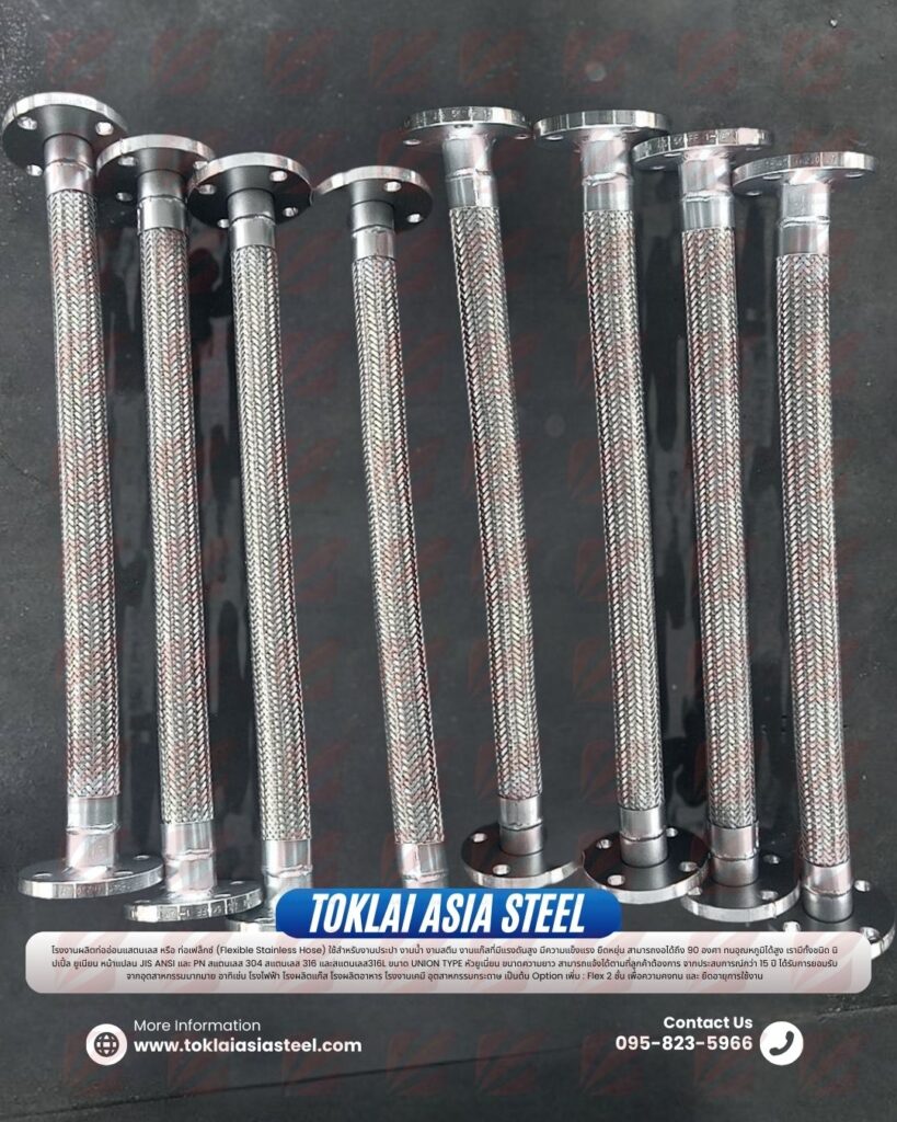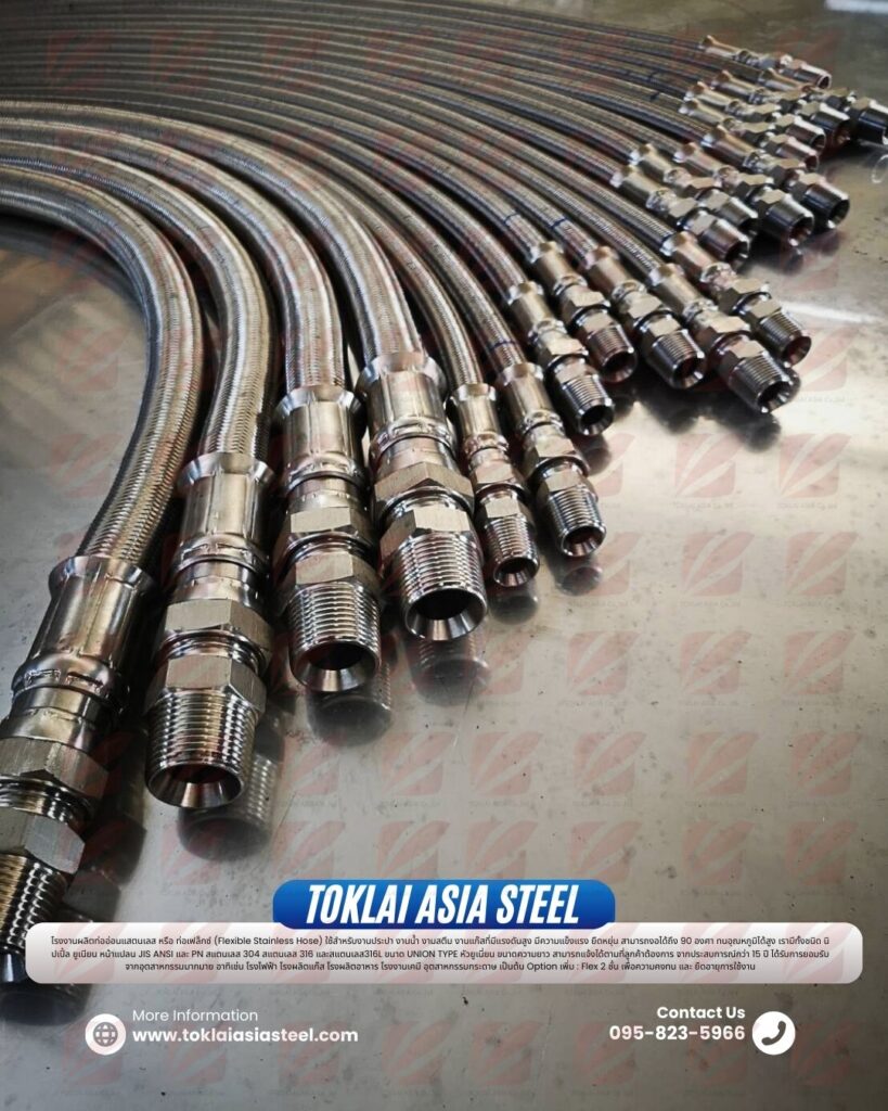 - ลักษณะ: ประกอบด้วยท่อภายในที่ทำจากสแตนเลสและมีการถักด้วยเส้นสแตนเลสภายนอกเพื่อเพิ่มความแข็งแรง