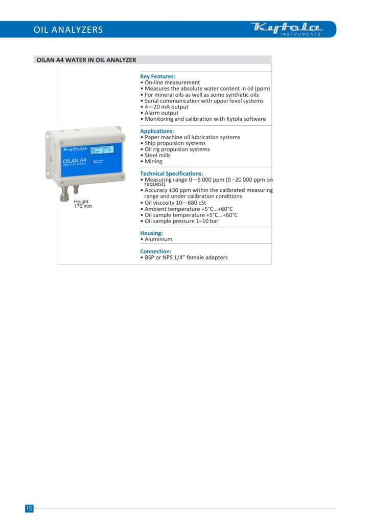Kytola is a manufacturer and developer of flow meters, oil lubrication systems and oil analyzers.The company founded in 1945 by Olli Kytola is located in Muurame, Finland. Olli Kytola understood there was a need for reliable flow measuring instruments. He achieved his dream as the Kytola line of products has systematically and steadily grown during past decades to an internationally known company, whose products are used worldwide.